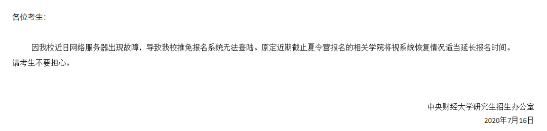 中央财经大学推免生报名系统延长报名时间通知
